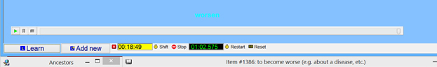 - Start/Pause/Restart - (re)starts/pauses the learning time stopwatch