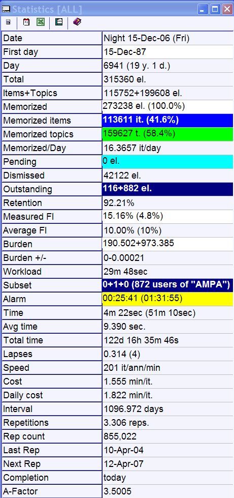 Learning options make it possible to define the speed of learning, time when your 'memory day' ends (i.e. time you go to sleep), etc.