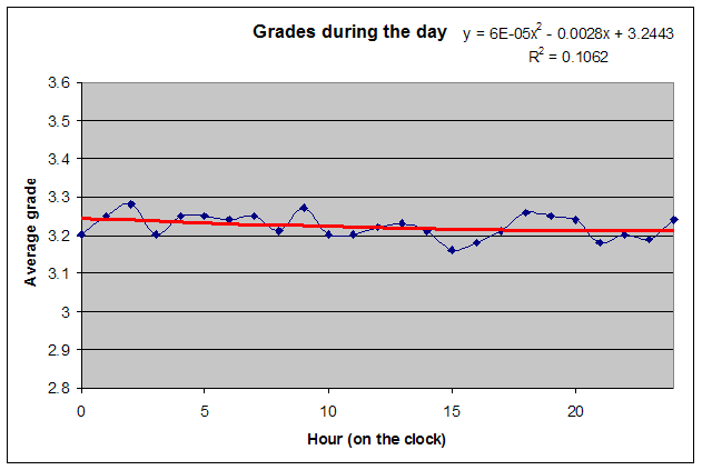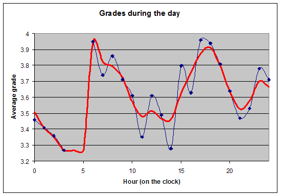 In other data sets, it has also be found that later waking up (after 11 am) often correlates with lower grades again (perhaps as a result of weekend late "partying" that results in poorer sleep and later awakening).
