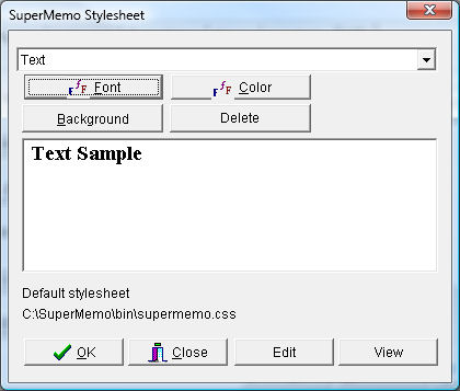 - View - open the default SuperMemo stylesheet in the program set on your computer to open .css files