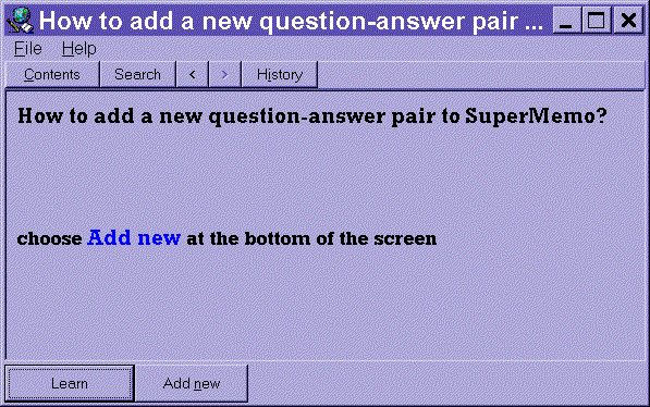 - Novel features of SuperMemo 98 not found in SuperMemo 8: