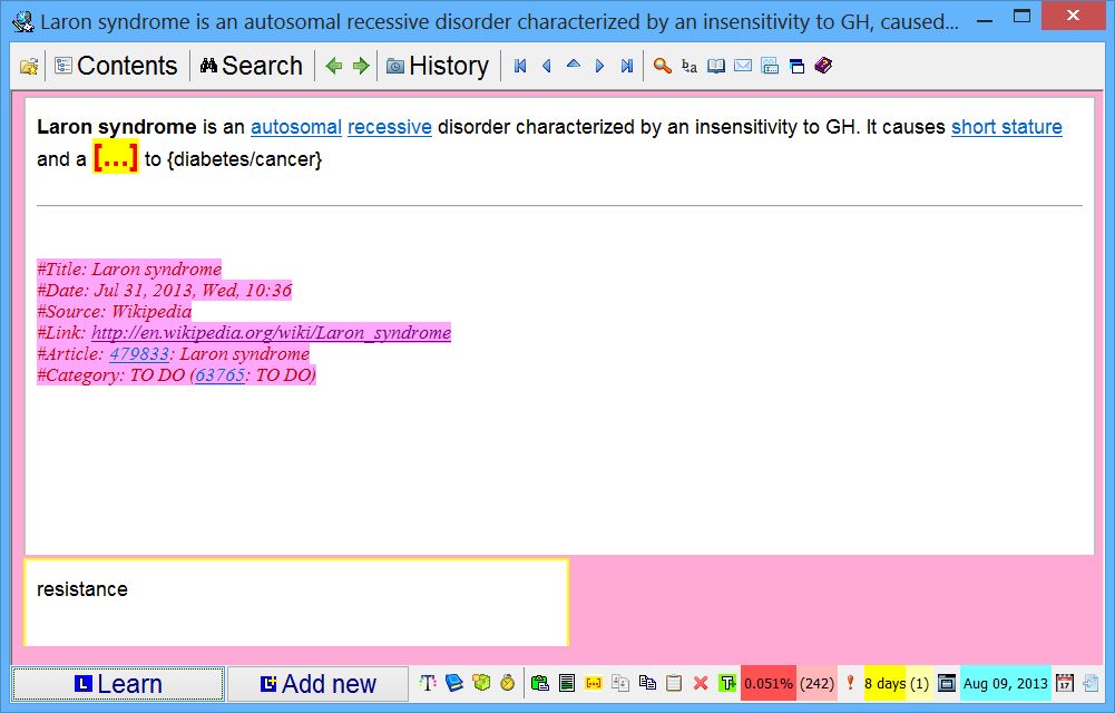 As for my other learning needs, they start with my professional life which happens to be computer programming. And it seems like an area of knowledge which is not particularly well-suited for declarative learning. Furthermore, Dr Wozniak himself admits learning materials for programming are not suitable for processing with incremental reading. In other words, I seem to be unable to realize the promise of incremental reading in my life’s vocation thus leaving me less determined to explore it for other domains.
