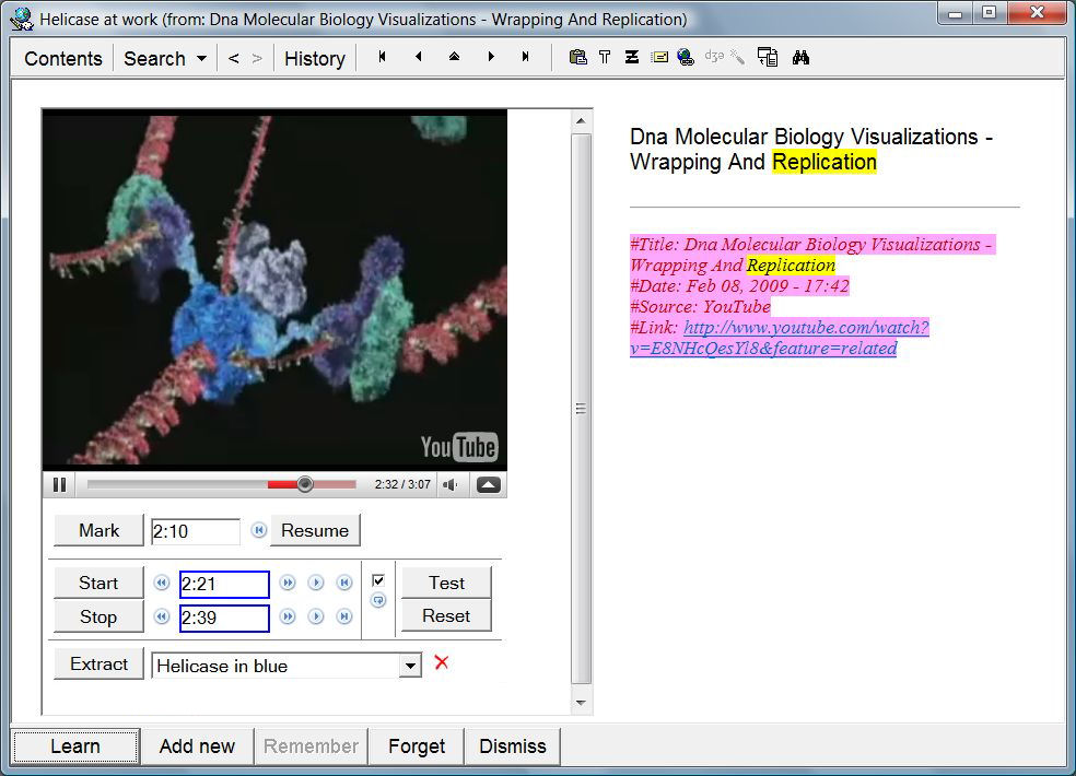 Incremental video makes it possible to collect thousands of YouTube videos and learn them gradually in order of priority. Video learning is a powerful tool that should always be used to extend standard non-interactive education based on texts and pictures. It can also be used for the fun of viewing or listening to videos, esp. if your appetite for new material is always greater than your ability to process it. You can pause videos and resume viewing weeks later. You can extract best fragments for repeat viewing and/or learning. You can now also turn SuperMemo into a smart music and video jukebox. To learn more see: Incremental video